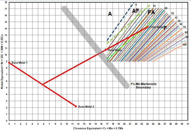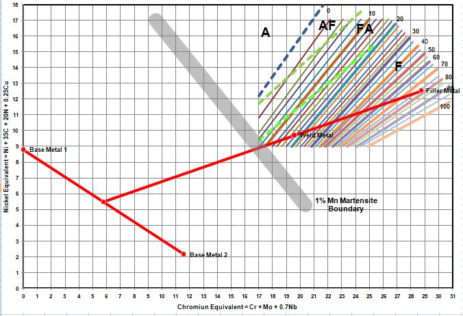Weld Metal composition analysis with E312-XX electrode using WRC-1992 diagram